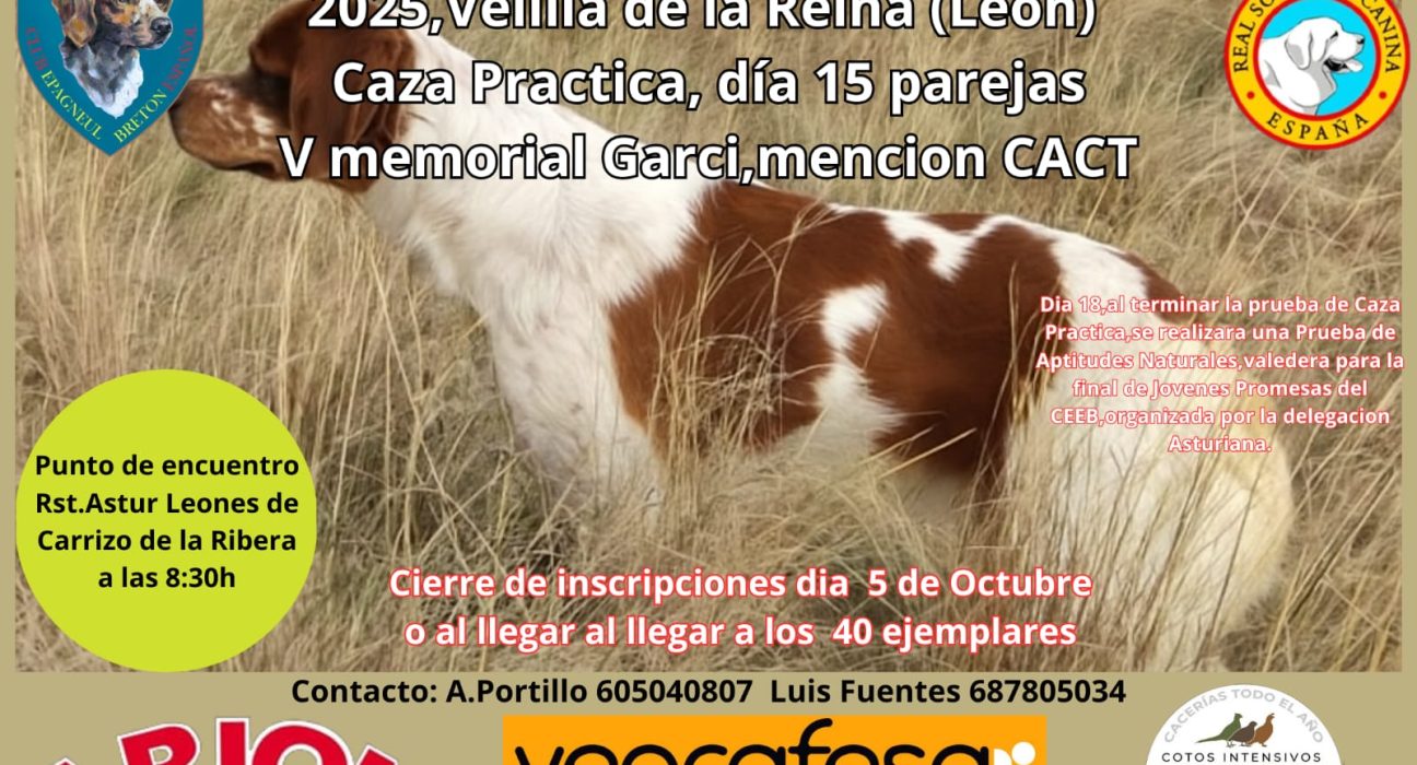 Cartel del evento Colaboran Información del Evento Descripción del evento: Dias  15, 16, 17, 18 y 19 de octubre de 2025 en Velilla de La Reina (León). El día 15 se correrá en parejas.El día 18, al terminar la prueba de caza práctica, se realizará una PAN. organizada por la Delegación asturiana y que será